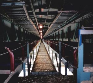 It is recommended that the bottom of the gallery underneath the belt be kept open to permit snow and dust to fall free from the return belt. You don’t want snow and dust to build-up inside the gallery; not only is it hard to remove, but it can result in a serious structural overload condition. The amount of snow and dust falling off return idlers can be substantial, so provide lots of space under conveyors for clean-up access.